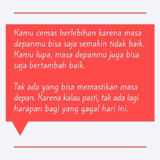 Saudaraku, cobaan apapun yang sedang kita alami saat ini, sama sekali tidak menggambarkan masa depan bagaimana. Jangan berlebihan dalam memikirkan masa depan, seolah-olah kita sudah tahu pasti apa yang akan terjadi.