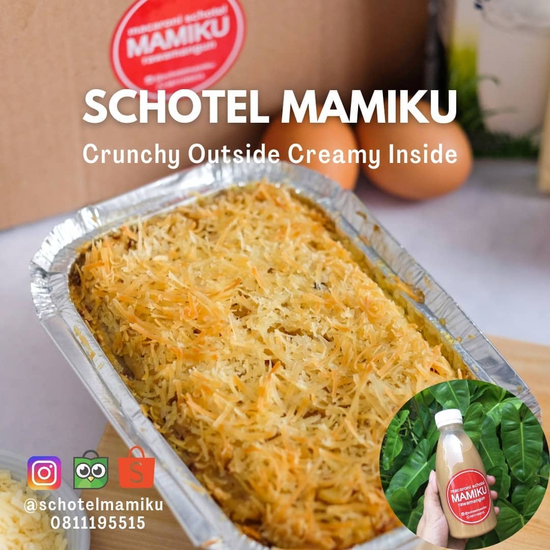 Macaroni @SchotelMamiku “Crunchy outside Creamy Inside” adalah makaroni panggang HALAL dengan perpaduan isi daging (sosis/smoke beef), keju premium, telor, susu, dan bumbu khas keluarga. Isinya FULL hingga ke atas loyang dengan topping keju CRUNCHY yang berlimpah diluar dan rasanya CREAMY didalam. Fresh from the oven siap disantap. Dijamin sukaaaaa!